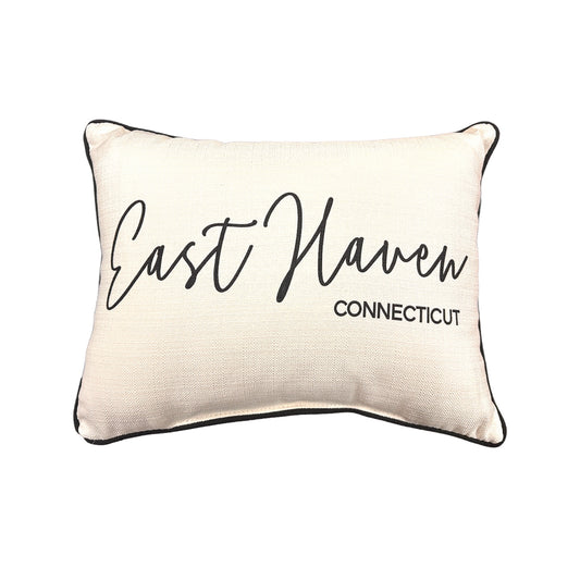 East Haven Connecticut Throw Pillow with Pinot Script and Black Piping - 19-in