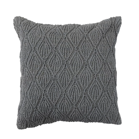 Square Gray Woven Cotton Pillow with Diamond Pattern - 18-in