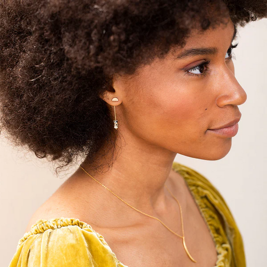 Gemstone Meteor Thread Earrings - Sunstone/Gold