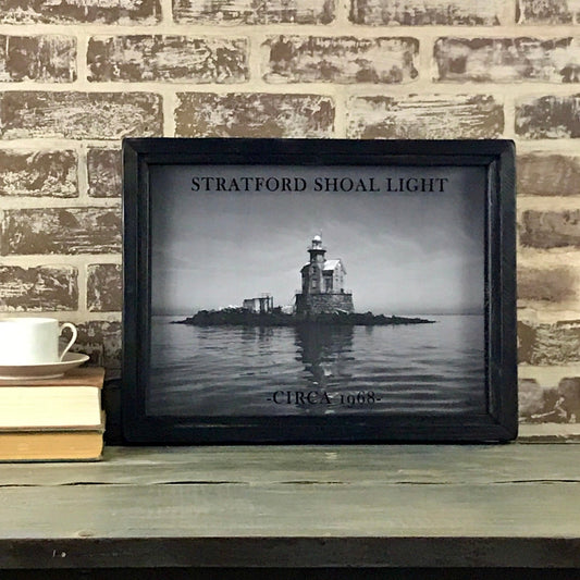 Stratford Shoals Light Reproduction Photo in Framed Shadowbox 18-in