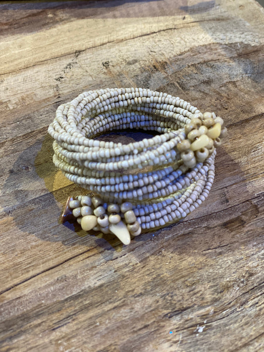 Triple Wrap Bead and Wire Bracelet with Stones and Beads - Natural