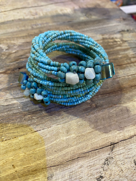 Triple Wrap Bead and Wire Bracelet with Stones and Beads - Turquoise