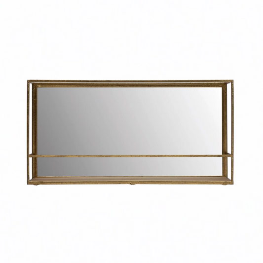 Metal and Wooden Wall Shelf with Mirror - 23-1/2-in