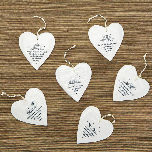 Ceramic Heart Ornament Embossed Sentiment 3-3/4"
