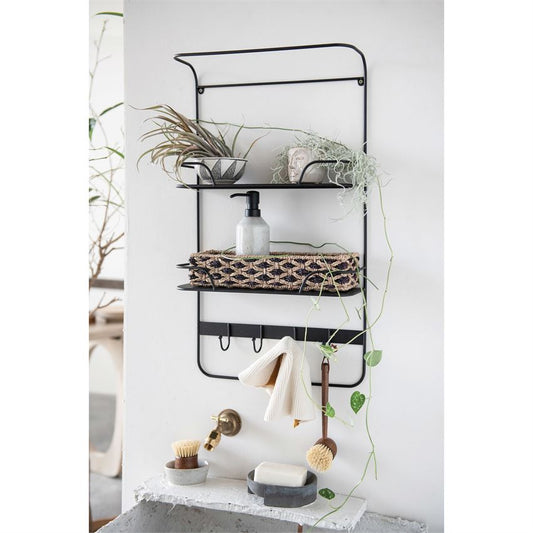 Hand-Woven Seagrass & Metal Basket - Black & Natural - 13-3/4-in