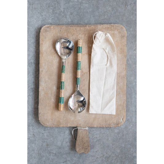 Stainless Steel Salad Servers with Striped Cane Handles (Set of 2 Pieces in Drawstring Bag)
