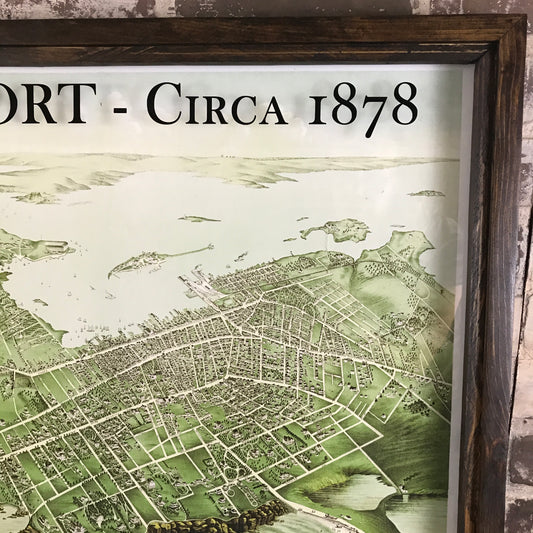 Newport Rhode Island Map Circa 1878 Framed Ash Gray Shadowbox - 25-in