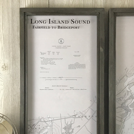 Long Island Sound Triptych - From Fairfield to Bridgeport - Framed Map Circa 1931 Grey Wax Shadowbox - 42-in