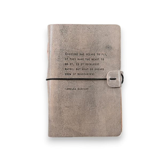 Grey Leather Journal - Everyone Has Oceans To Fly ... -Amelia Earhart