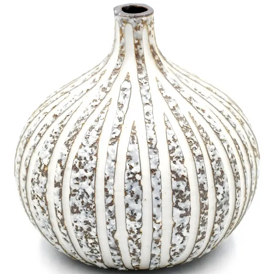 Diva Round Porcelain Bud Vase - White Carved 7"W x 6"H