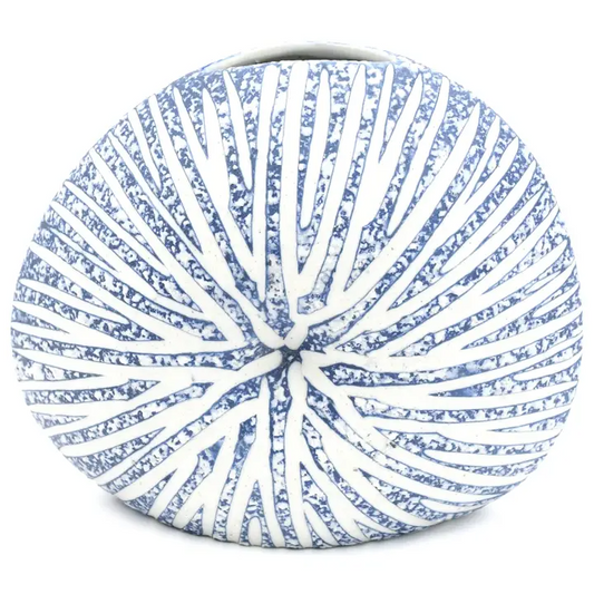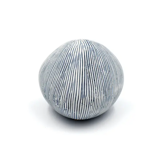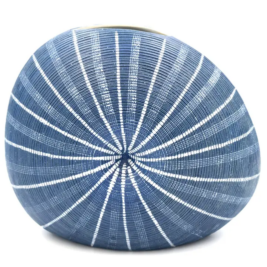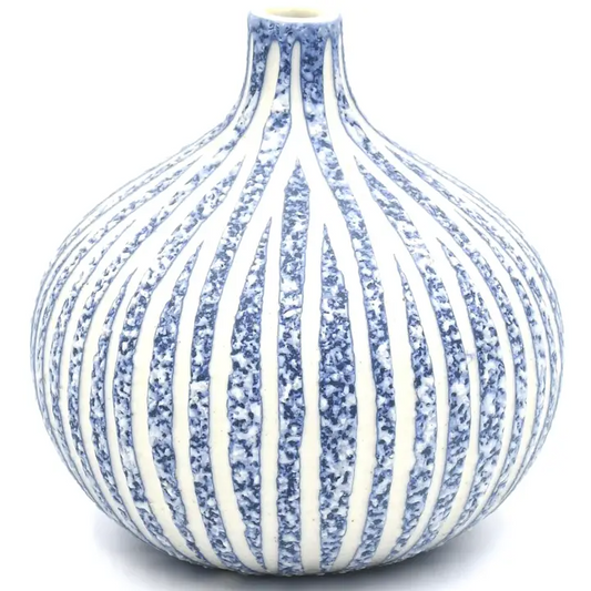 Diva Round Porcelain Bud Vase - Blue with White Stripes 7"W x 6"H