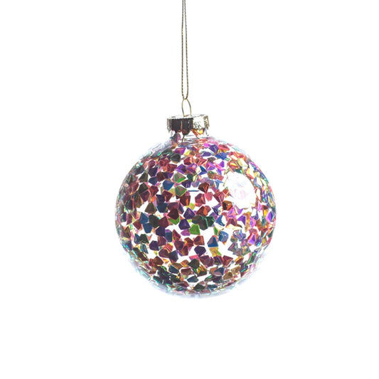 Multicolor Sequin Glass Ball Ornament - 3-in