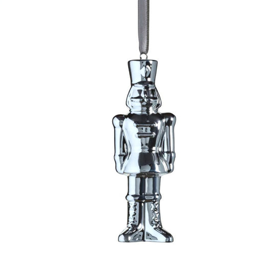 Silver Ceramic Nutcracker Ornament - 9-3/4-in