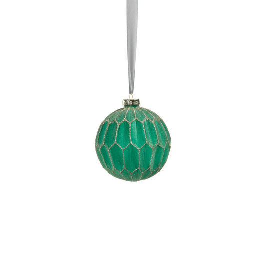 Green and Silver Honeycomb Glass Ball Ornament - 3-1/4-in