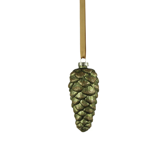Green Glass Pine Cone Ornament - 5-in
