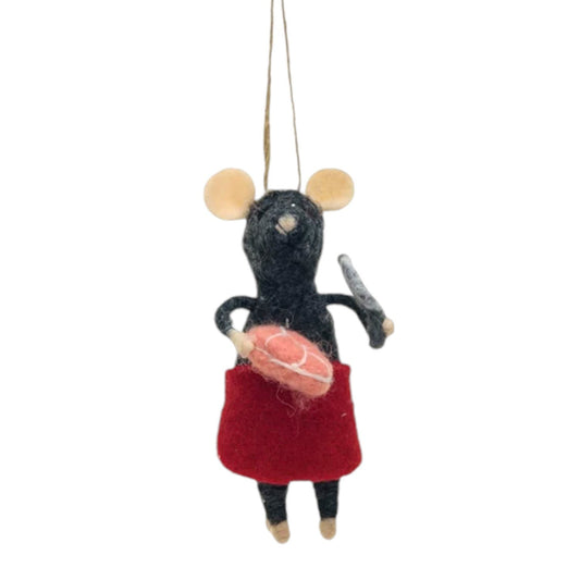 Handmade Wool Felt Chef Mouse Ornament - 5-1/2-in