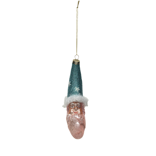 Mercury Glass Blue Santa Moon Ornament - 6-1/2-in