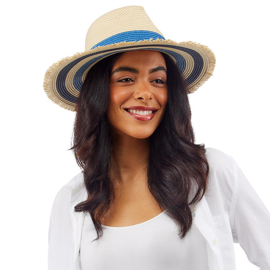 Blue Stripe Hat with Eyelash Fringe