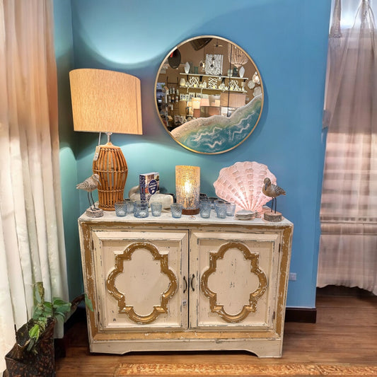 Island Reflections Round Mirror with Gold Metal Frame - 27-1/2-in