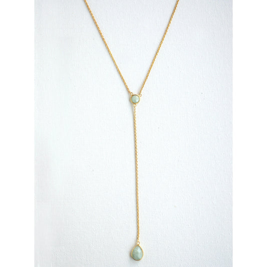 925 Silver Y-Necklace w/Natural Gemstones - Emerald / Silver