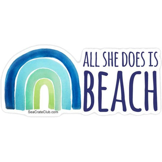 All She Does is Beach - Vinyl Sticker Decal -3-in
