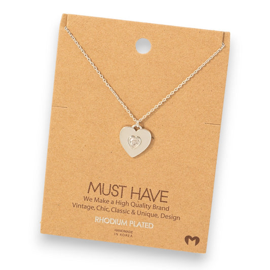 Heart Pendant Necklace - 16-in - Rhodium Plated