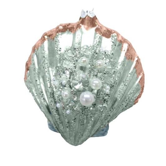 Seafoam and Gold Scallop Shell - December Diamonds Holiday Ornament