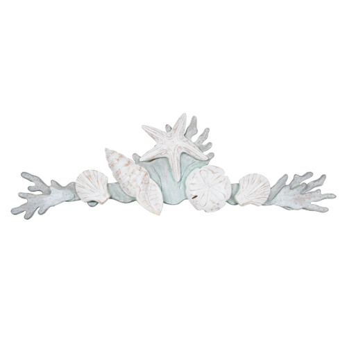 Shell and Coral Swag Hand Carved Wood - Wall Art - White Wash/Seafoam - 35-in