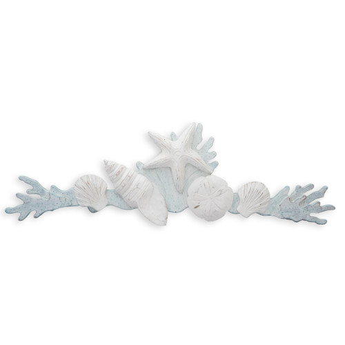 Shell and Coral Swag Hand Carved Wood - Wall Art - White Wash/Aqua - 35-in