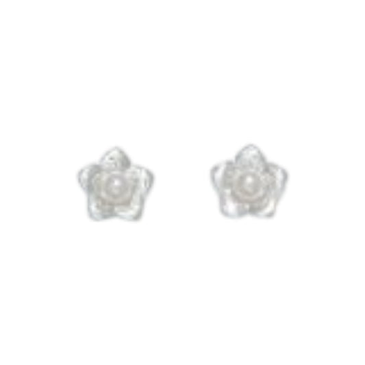 Silver Flowers with Pearls - Silver Stud Earrings