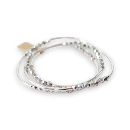 Triple Wrap Bracelet - Silver Tube and Hematite Beads