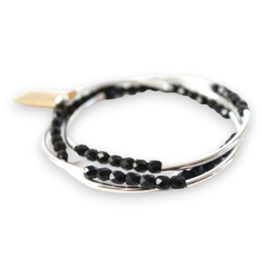 Triple Wrap Bracelet - Silver Tube and Black Beads