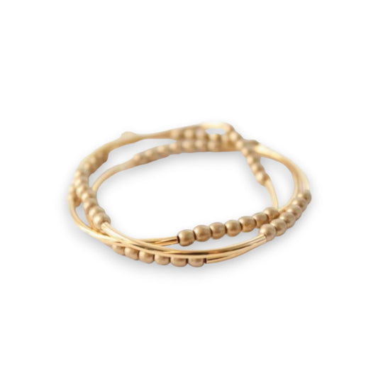 Triple Wrap Bead and Wire Bracelet with Stones and Beads - Natural