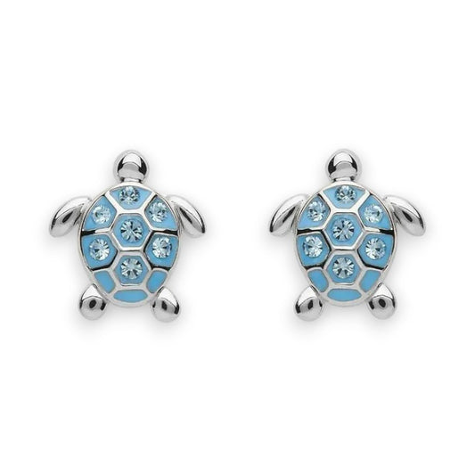 Turtle Aqua Swarovski Crystal Stud Earrings - Sterling Silver