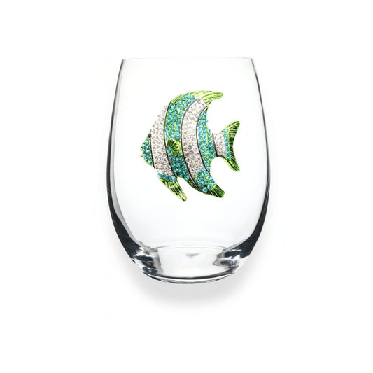 Turquoise Tropical Fish Jeweled Stemless Wine Glass