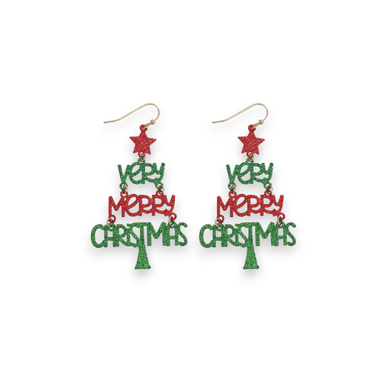 Very Merry Glitter Christmas Tree Holiday Earrings