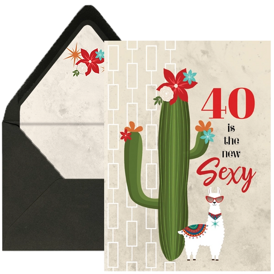 40 Is The New Sexy Llama and Cactus - Birthday Greeting Card