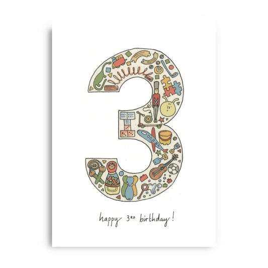 3rd Birthday Card - Hand Illustrated Vintage Style