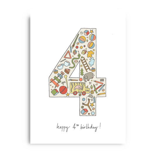 4th Birthday Card - Hand Illustrated Vintage Style