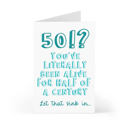 50!? You've Literally Been Alive for Half of a Century - Let that Sink in... - Birthday Greeting Card