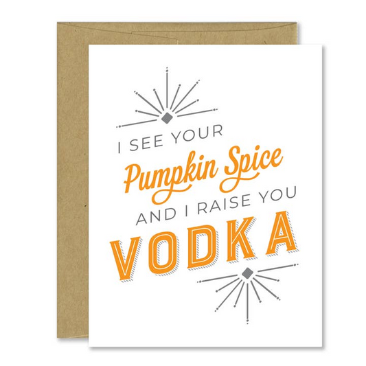 "I See Your Pumpkin Spice and I Raise You Vodka" - Fall Greeting Card