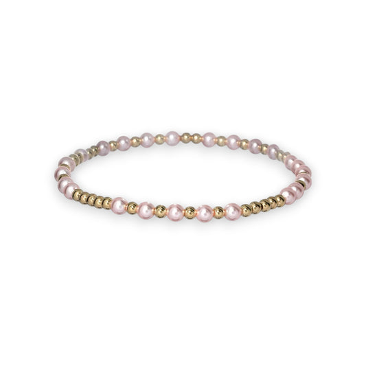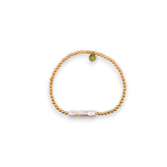 "ARIA" Gold Filled and Freshwater Pearl Ball Beaded Stretch Bracelet