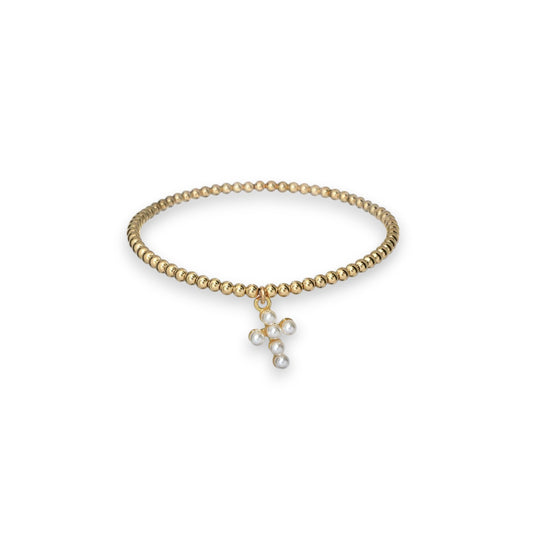 "RACHEL" Pearl Cross Ball Bead Stretchy Bracelet
