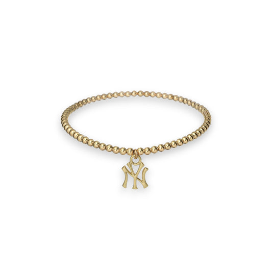 "NY" Charm Gold Filled Ball Bead Stretchy Bracelet