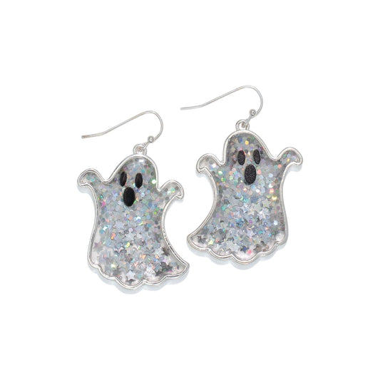 Silver Glitter Ghosts Earrings