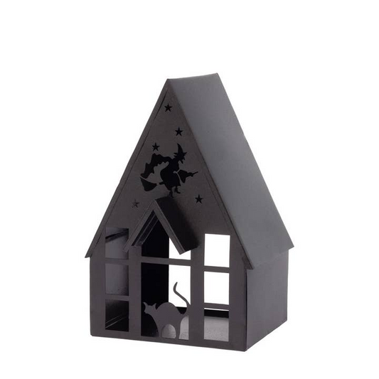 Black Metal Haunted House Halloween Décor With Cat And Witch - 8-1/4-in Tall