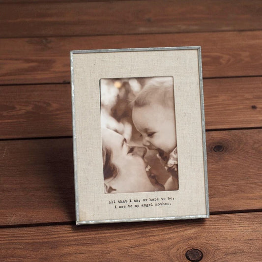 All That I am, Angel Mother Zinc Linen Frame 4"x6" Vertical