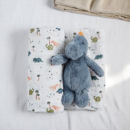 Ditsy Floral Swaddle & Bunny Rattle Set