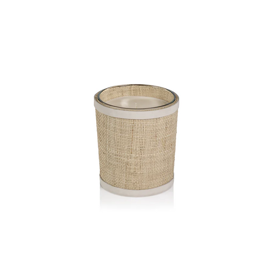 Candle in Natural Raffia Basket with Leather Trim - Sea Salt And Coastal Mist - 12 oz