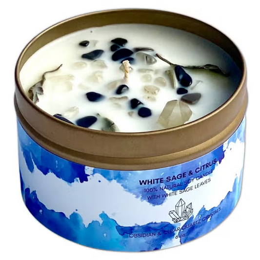 White Sage and Citrus Candle With Obsidian and Clear Quartz Crystals - 6.4-oz